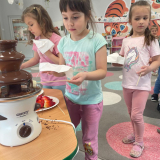 Nasze przedszkolaki w tym dniu miały okazję zobaczyć, powąchać, dotknąć a przede wszystkim spróbować czekolady.